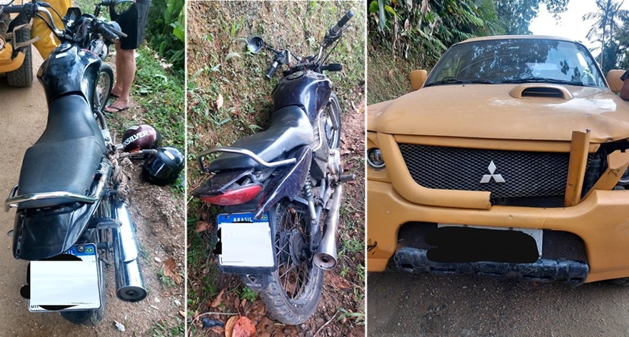 Um acidente de trânsito envolvendo duas motocicletas e uma caminhonete Mitsubishi L200 foi registrado por volta das 17h40min, na Rua Abissínia, no bairro Rodeio 32, em Rodeio, no Médio Vale do Itajaí.