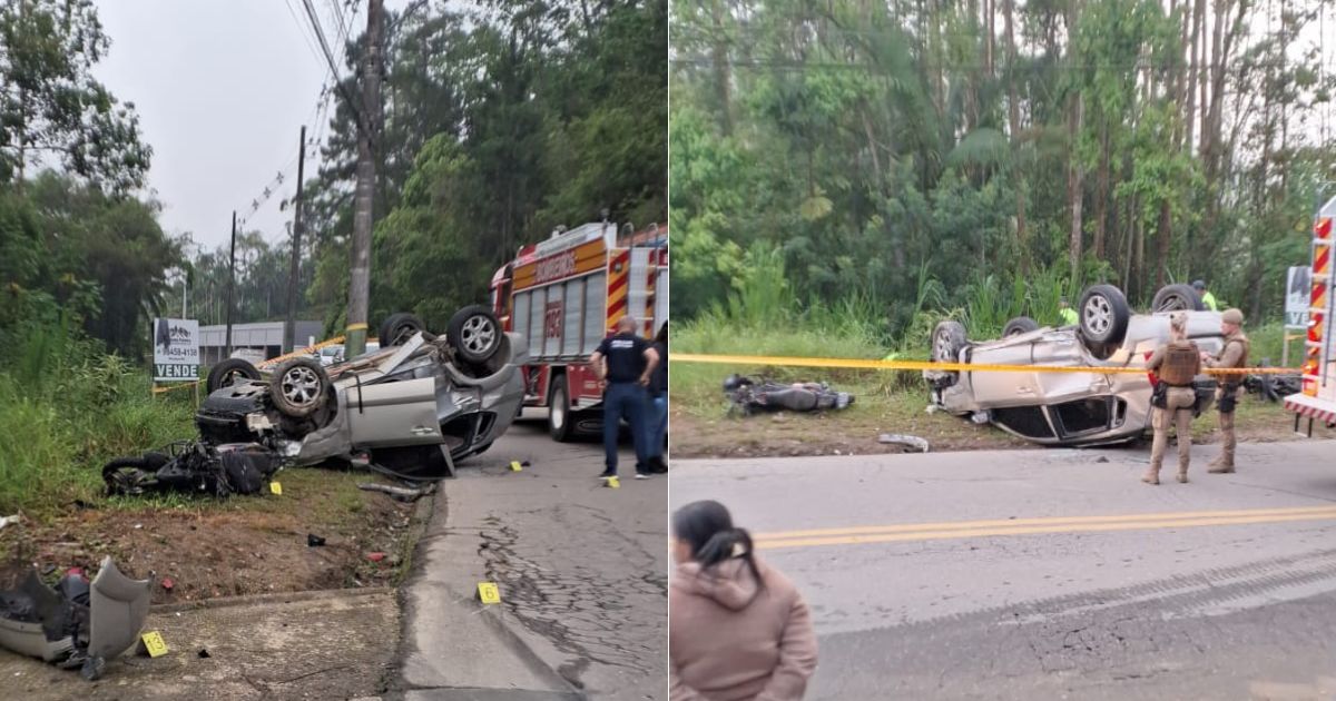 De acordo com o Corpo de Bombeiros Militar, três veículos se envolveram na colisão: um Hyundai Tucson e duas motocicletas Honda XRE. O Tucson, conduzido por um homem de 29 anos, capotou após a batida. Ele foi encontrado fora do veículo, consciente, orientado e com sinais vitais estáveis. O motorista apresentava um ferimento lacerante na cabeça, recebeu atendimento pré-hospitalar e foi encaminhado ao Hospital Azambuja.