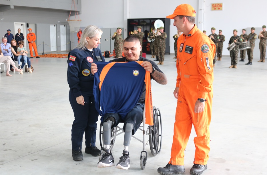 Durante a cerimônia alusiva aos 10 anos, realizada no Aeroporto Regional de Blumenau, profissionais foram condecorados com medalhas e vítimas atendidas pela equipe foram homenageadas — entre elas, um homem de 29 anos, que sobreviveu a um grave acidente em Benedito Novo, quando a carreta que dirigia perdeu os freios em uma serra.