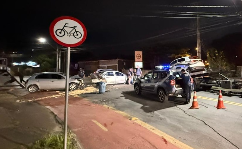 O Corpo de Bombeiros Militar, o SAMU e a Guarda Municipal de Trânsito atenderam, na noite desta quinta-feira (20), um grave acidente de trânsito envolvendo três veículos na Rua dos Caçadores, no bairro Velha, em Blumenau. A colisão ocorreu por volta das 20h40min e deixou duas pessoas feridas.