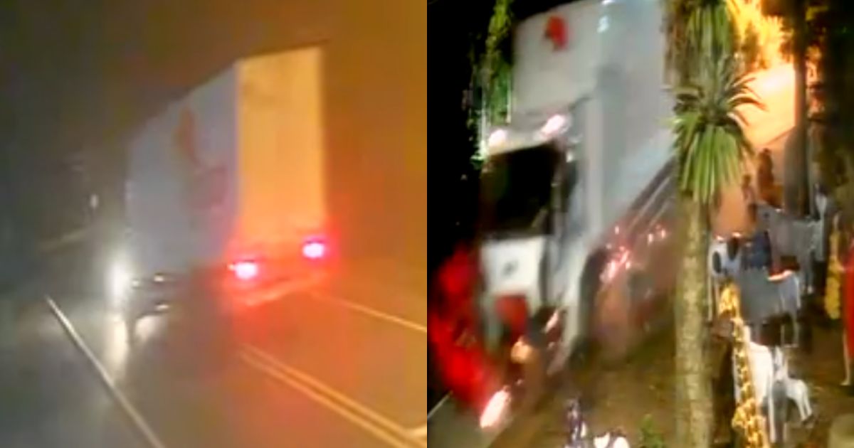 Uma câmera de segurança flagrou o momento em que um carro e um caminhão colidem frontalmente na BR-470, em Apiúna. O grave acidente vitimou os três homens que estavam no Volkswagen Gol, com placas de Ibirama.