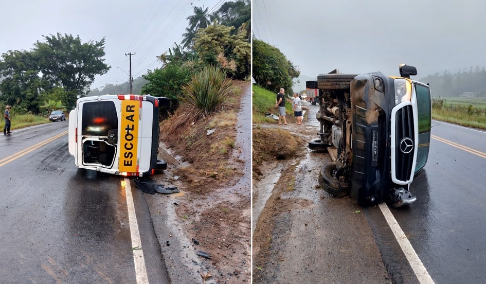 Capotamento de van escolar na SC-110 deixa motorista ferido em Rodeio