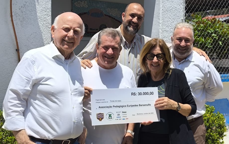Na manhã desta segunda-feira (10), a Augusta Respeitável Loja Simbólica Verde Vale realizou uma entrega solidária que reforçou o impacto do voluntariado na comunidade. A instituição destinou R$ 30 mil à Casa da Acolhida São Felipe Neri e o mesmo valor à Associação Pedagógica Eurípedes Barsanulfo (localizada no bairro Vorstadt), somando R$ 60 mil em doações.