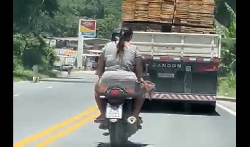 As imagens enviadas por uma leitora do Mesorregional mostram que a passageira da motocicleta trafegava sem o uso de capacete, enquanto o casal seguia no sentido leste/litoral da rodovia. A cena chama a atenção pelo alto risco de lesões graves ou fatais, especialmente em uma via de fluxo intenso e com veículos em alta velocidade.