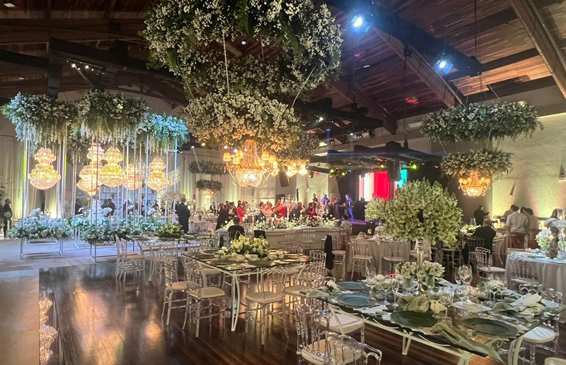 Convidados relataram ao Mesorregional que o casamento contou com um banquete extenso e sofisticado, com aperitivos e pratos considerados incomuns até mesmo em eventos de alto padrão. “Nunca vi e acho que nunca vou ver uma festa tão luxuosa na minha vida”, afirmou um dos presentes. Logo na recepção, os convidados foram recebidos com apresentação musical ao vivo, incluindo violinos e possivelmente uma harpa, seguida por show de banda sertaneja, grupo de pagode e, no encerramento da noite, DJ. E por fim, um buquê de rosas importadas para os convidados.