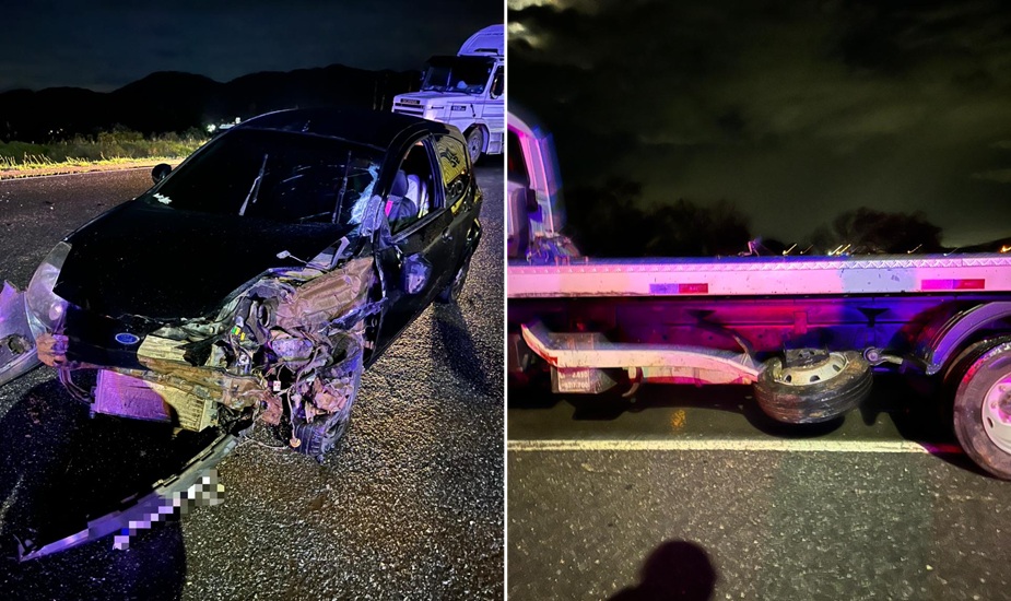 Colisão entre carro e caminhão mobiliza bombeiros no novo acesso de Ilhota