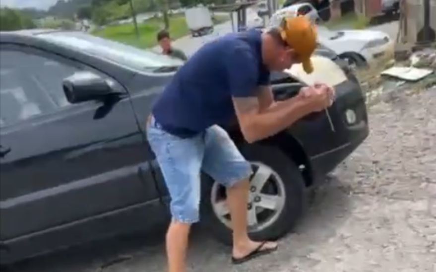 De acordo com as gravações, o motorista desfere golpes contra o automóvel, furando pneus e atingindo vidros, enquanto discute com o outro condutor. Na sequência, ele entra no próprio carro e, de forma intencional, engata marcha a ré, atingindo mais uma vez o veículo que teria participado de uma colisão anterior.
