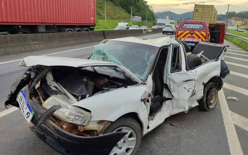 Um acidente de trânsito mobilizou diversas forças de resgate no final da tarde desta sexta-feira (16), no bairro Fortaleza, em Blumenau, em um trecho da BR-470 conhecido como “Antiga Segalas”. A ocorrência envolveu um engavetamento entre dois caminhões e uma picape VW Saveiro, exigindo atuação integrada da Polícia Rodoviária Federal, Corpo de Bombeiros Militar de Santa Catarina, Serviço de Atendimento Móvel de Urgência e da equipe aeromédica do Arcanjo 03.