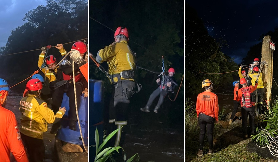 A operação foi realizada de forma organizada, com a travessia sendo feita uma pessoa por vez, todas equipadas com EPIs, como capacete e colete salva-vidas. As mochilas foram transportadas separadamente e, em um dos casos, um cachorro foi resgatado junto ao tutor, utilizando equipamento apropriado.