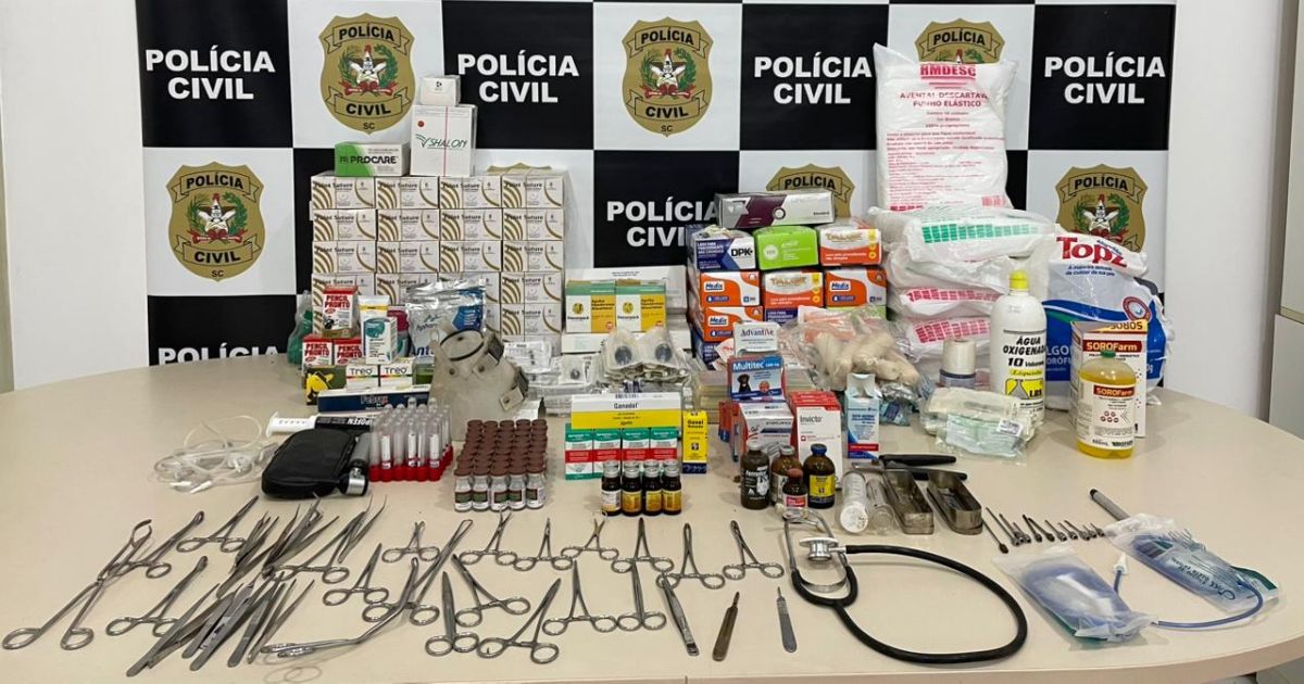 Durante as buscas, os agentes localizaram materiais que comprovam o exercício habitual e clandestino da medicina veterinária. O espaço funcionava em um rancho compartilhado com cavalos, e o homem não possuía registro no Conselho Regional de Medicina Veterinária (CRMV).