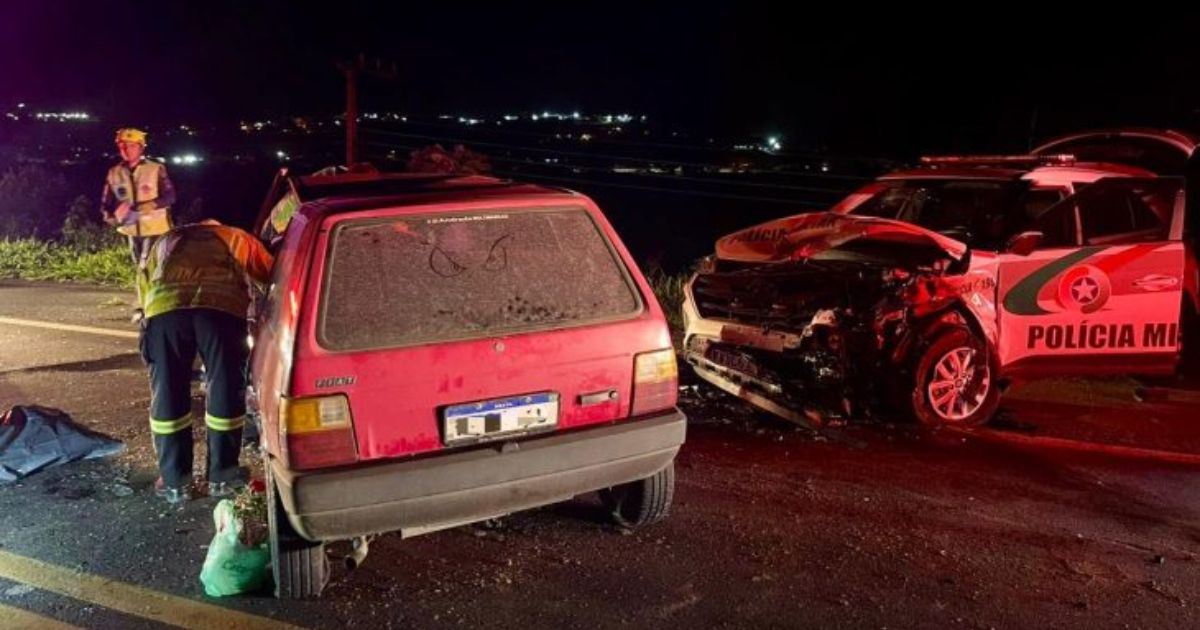 Um grave acidente deixou uma pessoa morta na noite desta quarta-feira (18) na BR-470, no km 149, em Rio do Sul, no Alto Vale do Itajaí. A colisão frontal envolveu um Fiat Uno e uma viatura Hyundai Creta da Polícia Militar.