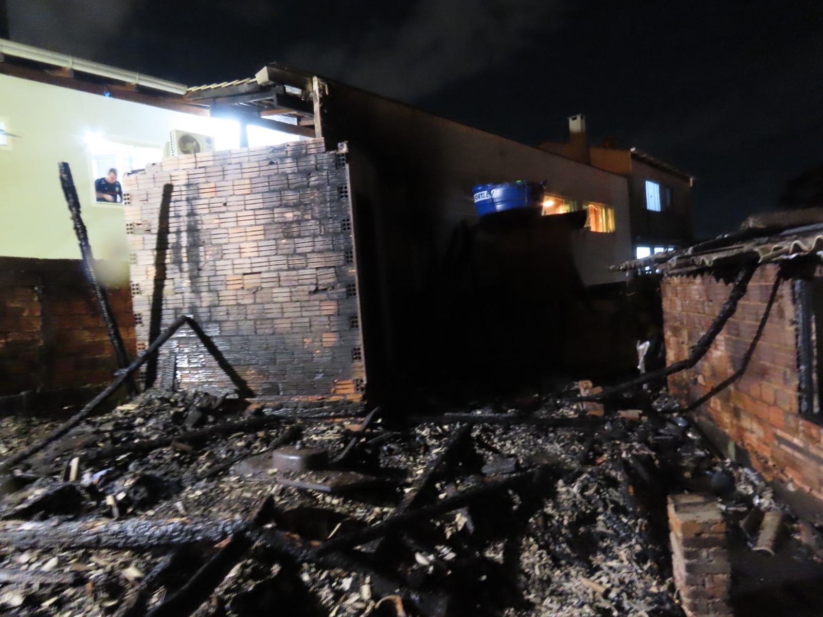Quando as equipes chegaram ao local, constataram que o bloco dos fundos do imóvel, construído em alvenaria e dividido em duas partes, já estava completamente tomado pelas chamas.