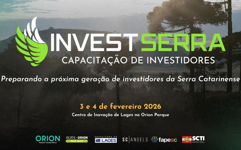 Para abrir o calendário de atividades de 2026, o Orion Parque Tecnológico , em Lages , anunciou o lançamento do Invest Serra . O evento é uma abordagem focada na capacitação de investidores anjo , realizada em parceria com a SC Angels e a Fapesc (Fundação de Amparo à Pesquisa e Inovação do Estado de Santa Catarina). A iniciativa conta com o apoio da Prefeitura de Lages , uma das principais mantenedoras do parque.