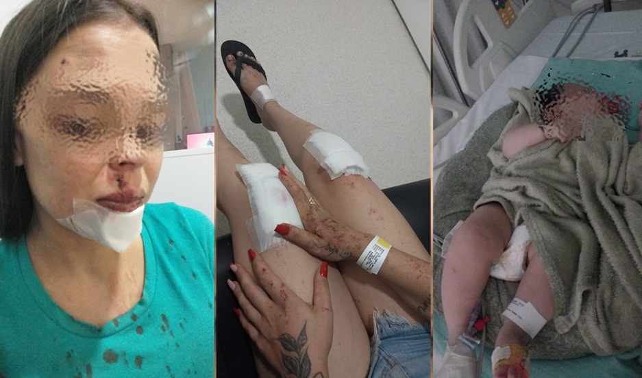 Além das lesões físicas, as vítimas tiveram danos materiais, incluindo roupas, calçados, carrinho de bebê e um telefone celular.