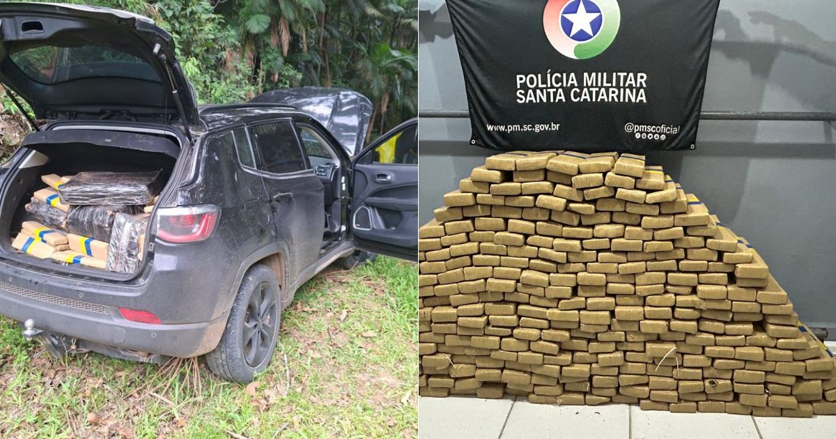 Mais de 250 kg de maconha são apreendidos em veículo furtado após perseguição em Blumenau