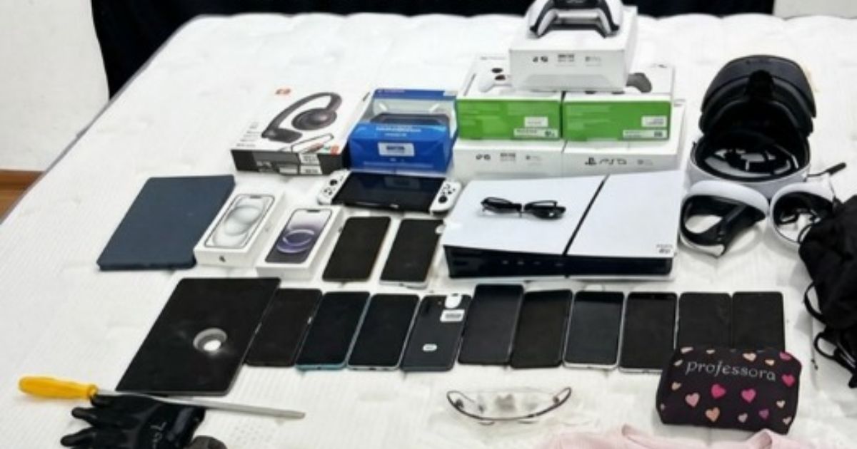 Com a suspeita, foram encontrados 14 smartphones de diversas marcas, seis controles de videogame, dois consoles, dois tablets, um controle remoto, um óculo interativo e dois controles de mão, totalizando cerca de R$ 53 mil em mercadorias.