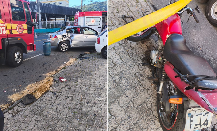 Um grave acidente de trânsito registrado na manhã deste sábado (11) resultou na morte de um motociclista na Rua dos Caçadores, no bairro Velha, em Blumenau.
