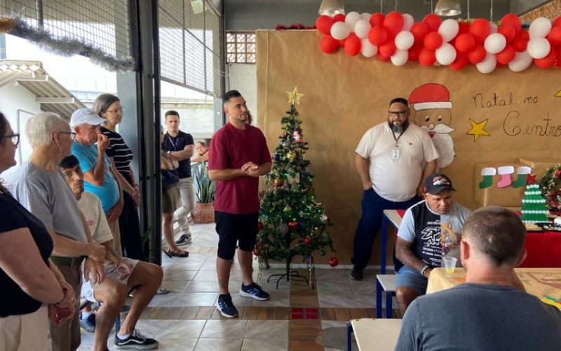 A parceria com voluntários da Igreja Nova Vida trouxe um momento de reflexão espiritual e palavras de incentivo. O ponto alto ficou por conta do depoimento de Gabriel Schwaemmle, ex-usuário do serviço que hoje celebra a superação. “Passei dois anos na rua, entre idas e vindas. Já queria mudar, mas faltava motivação. Um dia, numa conversa aqui no Centro POP, decidi que ia mudar de verdade. O pessoal me apoiou a ir para um abrigo. Parei com as drogas e hoje estou animado com a nova caminhada. Em 2026 entro na faculdade de Educação Física na Furb”, relatou Gabriel, emocionando a todos.