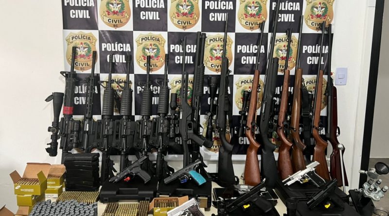 Polícia Civil prende suspeitos e apreende 25 armas em Blumenau. Envolvidos podem ter associação ao tráfico.