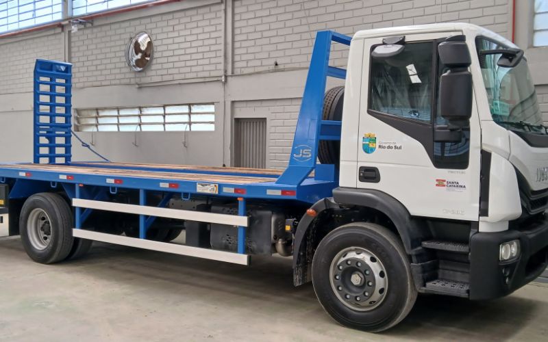 A Prefeitura de Rio do Sul incorporou à sua frota um caminhão Iveco novo, modelo 4×2, além de uma plataforma específica para o transporte de máquinas pesadas. Os equipamentos já estão em operação na Secretaria Municipal de Obras e serão utilizados para deslocar implementos aos canteiros de obras em diversas regiões do município, promovendo maior agilidade, segurança e eficiência nas atividades.