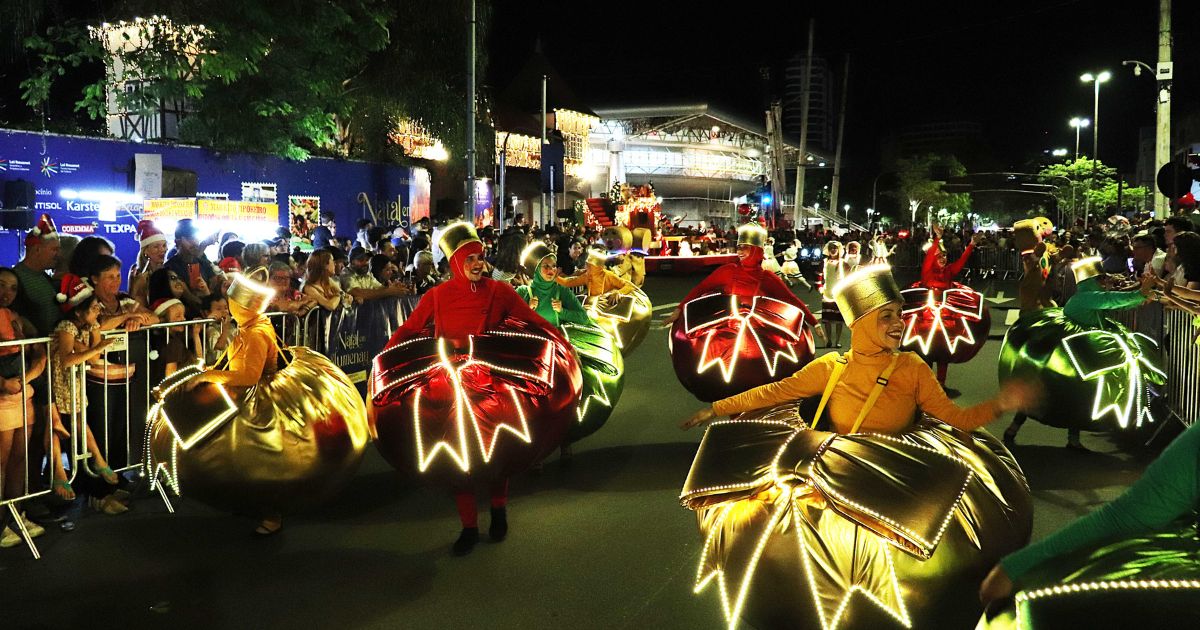 Com o tema “O Reino Mágico dos Guardiões do Natal”, a edição deste ano reuniu sete desfiles que encantaram moradores e visitantes. A programação contou com seis carros alegóricos, sete tripés e cerca de 250 figurantes, que deram vida a personagens e cenas natalinas marcadas por luzes, música e muita interação com o público. Os desfiles realizados nas ruas Alberto Stein e XV de Novembro se consolidaram como um dos pontos altos do calendário natalino da cidade.