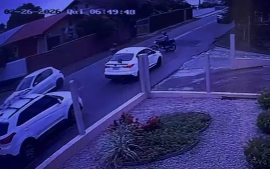 As imagens mostram que o condutor de uma Honda CG saiu da via transversal Rua Albino Osvaldo Classen, no momento em que o trânsito estava lento na Rua José Deeke, sentido Rua Benjamin Constant. Uma Honda Biz, que transitava pela lateral dos veículos, acabou colidindo lateralmente com a CG.