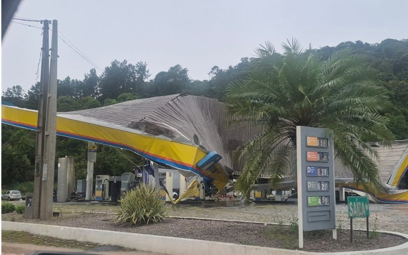 Durante o atendimento às ocorrências, o Corpo de Bombeiros Militar de Santa Catarina foi acionado para diferentes pontos da rodovia. No entanto, a situação mais grave envolveu o desabamento do teto de um posto de combustíveis, próximo do Paraíso dos Pôneis que acabou atingindo veículos que buscavam abrigo da chuva no local.
