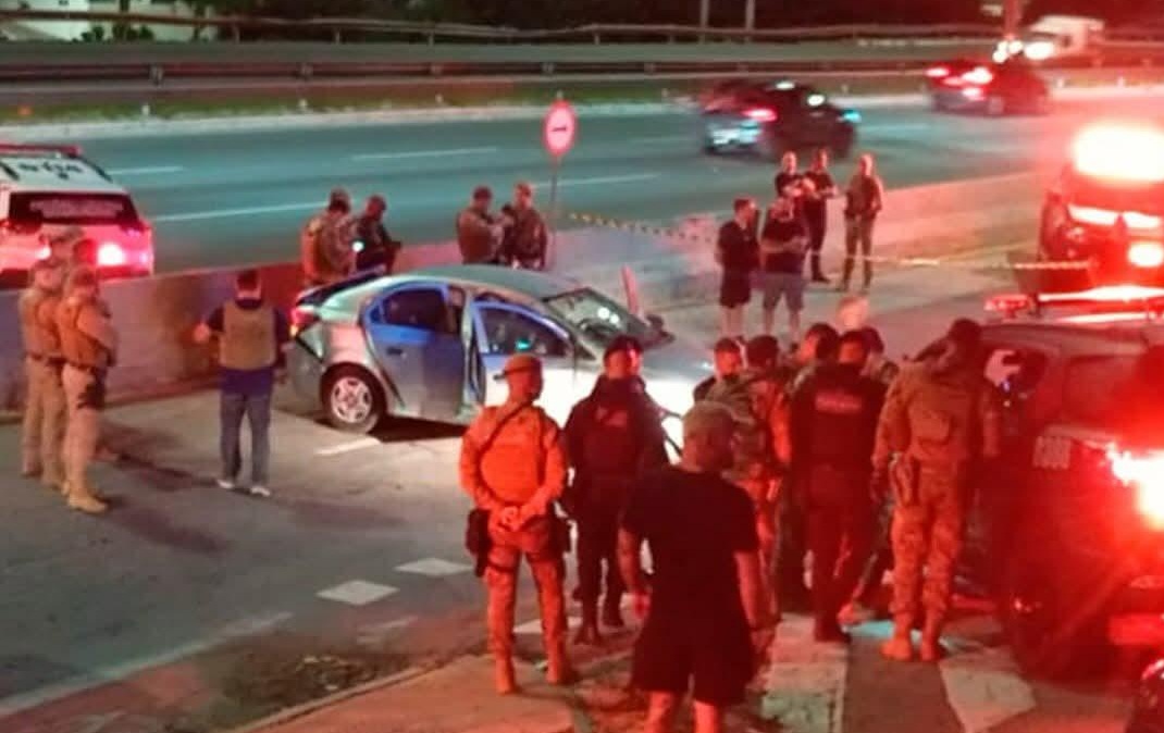 A ação também teve desdobramentos em outros pontos da cidade. Na região da Via Expressa (BR-282), em Coqueiros, no bairro Estreito, um veículo Chevrolet Onix foi atingido por disparos, indicando a extensão da ocorrência e a movimentação policial em diferentes áreas.
